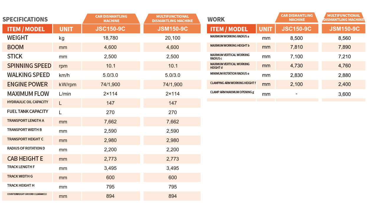● 采用汽車拆解機專用設(shè)計的作業(yè)裝置,增強適應(yīng)性、提高效率。