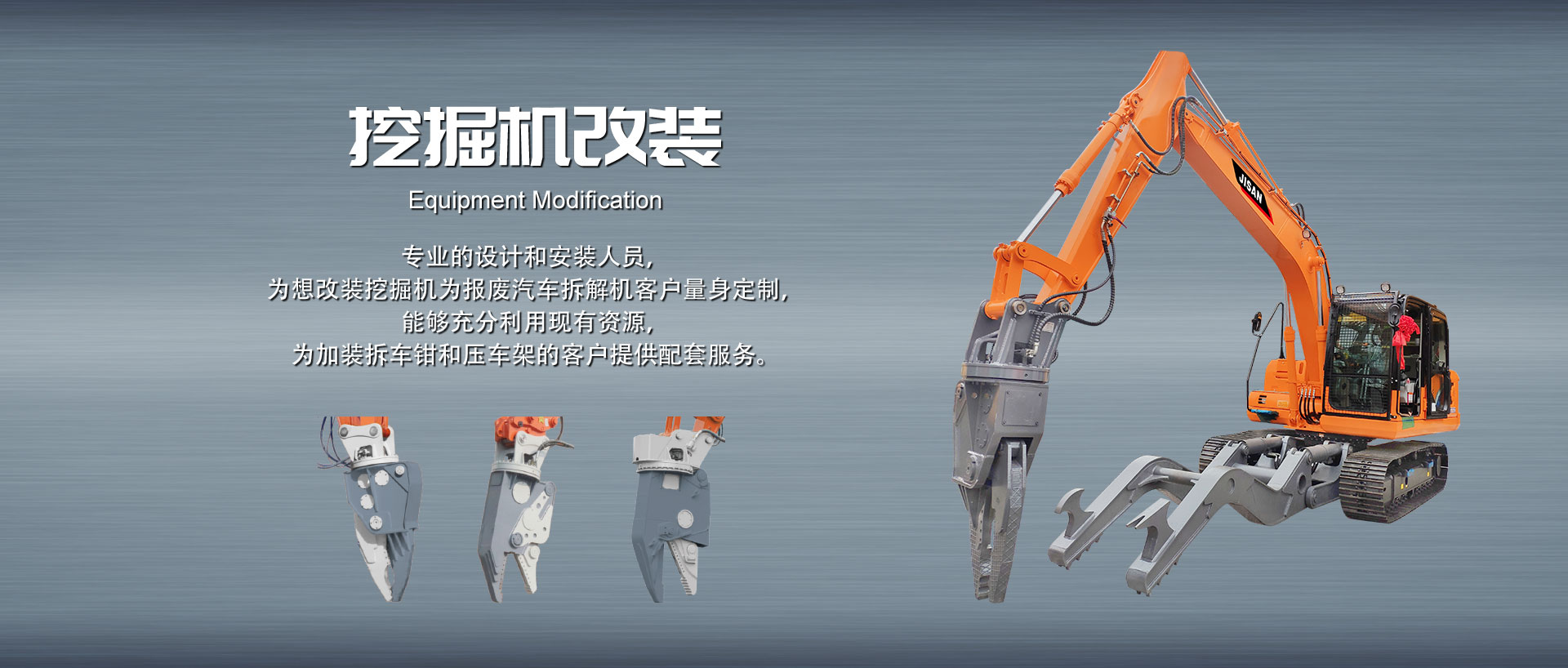 專業(yè)的設計和安裝人員,為想改裝挖掘機為報廢汽車拆解機客戶量身定制,能夠充分利用現有資源,為加裝拆車鉗和壓車架的客戶提供配套服務。